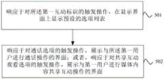 响应于对通话选项的触发操作,展示与所述第一用户进行通话操作的界面;或者,响应于对共享互动观看选项的触发操作,展示与第一用户进行媒体内容共享互动操作的界面。In response to the trigger operation of the call option, an interface for performing a call operation with the first user is displayed; or, in response to a trigger operation for the sharing interactive viewing option, an interface for performing media content sharing interactive operations with the first user is displayed.