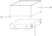 参考图3,与实施例1不同的是,本实施例提供的电池货舱一体式装货设备还包括货舱5,货舱5安装在集装器1的顶部,实现对货物的容纳;货舱5包括围绕设置在集装器1顶部的多个舱板5a和用于将舱板5a与集装器1可拆卸连接的连接件5b,舱板5a可选为与集装器1顶面形状相同的壳状结构,也可选为四个舱板5a通过卡接、螺栓连接、磁吸、栓接等方式进行连接形成,参考图4,例如可以选择舱板5a连接的两端为锯齿状结构,相邻两个舱板5a连接时通过锯齿状结构进行卡接,同时相邻两个舱板5a通过连接件对卡接的锯齿状结构进行限位,并且四个舱板5a连接后通过连接件5b与集装器1顶部可拆卸连接,使得货舱5的连接更加方便简单,降低成本,降低工作难度,提高工作效率。Referring to FIG. 3 , different from