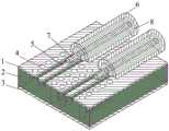 1、顶层接地导带;2、介质层;3、底层接地导带;4、金属化通孔;1. Top layer grounding strip; 2. Dielectric layer; 3. Bottom grounding strip; 4. Metallized through hole;