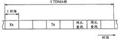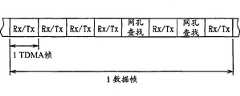 The situation that example shown channel (band separation) shown in Figure 2 is taken by terminal, but according to the state that is provided with in the cycle of arranging sending time slots Tx and receiving slot Rx, a plurality of terminals can be connected with a channel.For example, another example shown of Fig. 3 constitutes eight time slots of a tdma frame.In the described tdma frame in eight time slots first time slot be the receiving slot Rx that is used for receiving user profile from terminal, the 4th time slot is the sending time slots Tx that is used for sending from the base station user profile.Utilize this structure, send and receive operation if carry out on same frequency, then a tdma frame allows four time slots to be provided for sending and receiving, so that four terminals can be shared a band separation.Same in the example of Fig. 3, not carry out predetermined time slot cycle in each tdma frame that user profile receives in the transmission that each terminal is neither carried out user profile in (herein, for example the 6th and the 7th time slot) yet, the execution search operation is to find available base station.