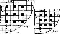 图4和图5所示,编码开始,在原始图像上以一定的距离散布尺寸为一个像素大小的值域种子;对原始图像行、列降2采样或四个相邻像素的平均生成紧缩图像,(如图2所示,a为原始图像中值域种子,b为紧缩图像中定义域种子)在紧缩图像上以一定的距离散布定义域种子;分析每一个种子的生长环境,即在种子周围特定大小的正方形内,计算值域种子的分形维数和定义域种子的分形维数;对于每一个值域种子,选择和它的生长环境最相似(维数最接近)的一定数量的定义域种子作为它的相似区域;即在原始图像上以RSTEP的距离散布尺寸为一个像素大小的值域种子Ri;对原始图像降2采样或四像素平均生成紧缩图像,在紧缩图像上以DSTEP的距离散布定义域种子Dj,(如图2所示);分析每一个种子的生长环境。即在种子周围ENV_SIZE×ENV_SIZE大小范围内,计算值域种子Ri的分形维数DimR(i)和定义域种子Dj的分形维数DimD(j);对于每一个值域种子Ri,选择和它的生长环境最相似(维数最接近)的DOM_NUM个定义域种子作为它的相似区域Rgn(i),As shown in Figure 4 and Figure 5, the encoding starts, and the value range seeds with a size of one pixel are scattered on the original image at a certain distance; the original image row and column are down-sampled by 2 or the average of four adjacent pixels to generate a compressed image , (as shown in Figure 2, a is the value domain seed in the original image, b is the definition domain seed in the compressed image) spread the definition domain seeds at a certain distance on the compressed image; analyze the growth environment of each seed, that is, in the seed Calculate the fractal dimension of the range seed and the fractal dimension of the definition domain seed in a square of a specific size around it; for each range seed, select a certain number of definitions that are most similar to its growth environment (the dimension is closest) domain seed as its similar area; that is, the value domain seed Ri with a size of one pixel is scattered on the original image with the distance of RSTEP; the original image is down-sampled by 2 or four-pixel averaged to generate a compressed image, and the compressed image is generated by DSTEP The distance spread defines the domain seed Dj , (as shown in Figure 2); analyze the growth environment of each seed. That is, within the size range of ENV_SIZE×ENV_SIZE around the seed, calculate the fractal dimension DimR (i) of the range seed Ri and the fractal dimension DimD (j) of the domain seed Dj ; for each range seed Ri , select the DOM_NUM domain seeds most similar to its growth environment (closest in dimension) as its similar region Rgn(i),