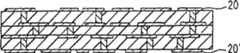 双面电路板18(也可使用含有两个或多个电路图形的电路板)被两个中间连接体(15b和15c)夹在中间,该中间连接体和图5D中所示中间连接体15a相同,所得到的这样的主体结构又被金属箔片19和19’从两个外侧夹在中间。而后,该主体结构和金属箔片19及19’被一同加热加压而集成在一起,这样就得到了叠层板(图5G)。然后,经处理金属箔片得到电路图形,这样就制成了多层电路板(图5H)。通过重复这些制造工序,就可得到更多层数的电路板。Double-sided circuit board 18 (also can use the circuit board that contains two or more circuit patterns) is sandwiched in the middle by two intermediate connectors (15b and 15c), and this intermediate connector and
