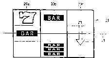 主显示器3具有大体设置在主显示器3的屏幕中心的可变显示区域20。三个符号显示部20a、20b和20c从一端到另一端被放置在可变显示区域20中。在每个符号显示部20a、20b和20c上显示具有多个从顶部移动到底部的符号的滚动显示图像(显示成好像机械卷筒转动的卷筒图像),并且显示与第一至第三卷筒相对应的符号。当投币游戏结束时,在每个符号显示部20a、20b和20c上显示具有三个纵向排列的符号的符号列。这三个符号列指示游戏的结果。The