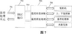 本实用新型的监控系统电路210、227可由不同的电路模块组成,其中,由监控板得到的监控数据,由HDLC接口702形成HDLC数据流送入基带处理单元701,由基带处理单元701送来的控制数据通过HDLC接口702送入监控信息获取和处理单元704,再通过数据总线705分发给相关的监控板。The