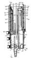 同样,在手柄处于锁定位置的状态下,为了微调各个管件的伸出长度,可以按压其解锁单元的按压片(参见图37-40),使得牵引索带动致动楔抵抗推力弹簧的推力而向下移动,从而借助致动块推动锁定单元朝向托架内部移动,从而定位销移出定位孔,使得可以解除该管件与其上一管件之间的锁定。Similarly, when the handle is in the locked position, in order to fine-tune the protruding length of each pipe, you can press the pressing piece of the unlocking unit (see Figure 37-40), so that the traction cable drives the actuating wedge to resist the thrust of the thrust spring. Move down, thereby pushing the locking unit to move toward the inside of the bracket by means of the actuating block, so that the positioning pin moves out of the positioning hole, so that the locking between the pipe and its previous pipe can be released.