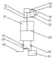 如图1所示,本实用新型气动脉冲加药泵包括直线气缸11、双速度调节阀14、15、双位进出电磁阀13,泵室21、泵室活塞22、连杆17、单向阀31、32、流量调节阀33。 As shown in Figure 1, the pneumatic pulse dosing pump of the utility model includes a