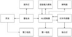 In a further embodiment, as shown in fig. 10, the electronic control assembly includes astorage battery 51, aPLC controller 53 and acharging port 52; thestorage battery 51 and thePLC 53 are both arranged on the end surface of theupper cover 11 close to therotary drum 32; thecharging port 52 is provided on theupper cover 11; thecharging port 52 is electrically connected to thebattery 51; thePLC 53 is respectively electrically connected with thestorage battery 51, thesecond motor 113 and theinfrared sensor 322; thestorage battery 51 is electrically connected with thePLC 53, theultraviolet lamp 114 and theswitch 115 respectively; thestorage battery 51 is used for supplying power to the garbage can and can be charged by electrifying thecharging port 52, and thePLC 53 controls the rotation stroke of thefirst motor 41 and the sounding of thebuzzer 232.