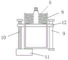 所述加压腔2顶部设有盖板,打开盖板用于放入或取出储液瓶5,加压腔2内的储液瓶5置于支架8的两臂之间,推板12位于储液瓶5和支架8的底板之间。The top of the pressurizing