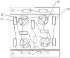 图2为双色贴片模组系列灯珠结构示意图,将双色温LED贴片灯珠结构当做一个单元,将多个所述双色温LED贴片灯珠结构单元排列组合在贴片模组支架上,形成双色贴片模组系列灯珠;Figure 2 is a schematic diagram of the structure of the two-color SMD module series lamp beads. The two-color temperature LED SMD lamp bead structure is regarded as a unit, and a plurality of the two-color temperature LED SMD lamp bead structural units are arranged and combined on the SMD module bracket , forming two-color SMD module series lamp beads;