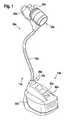 In einer vorteilhaften Ausbildung der Erfindung wird vorgeschlagen, dass der Verbraucher eine Lampeneinheit und eine Verbindungsvorrichtung aufweist, die in zumindest einem Betriebszustand die Lampeneinheit und die Versorgungsschnittstelle relativ zueinander bewegbar anordnet, wodurch eine besonders flexible und vielseitige Beleuchtungsvorrichtung bereitgestellt werden kann. Unter einer „Lampeneinheit” soll insbesondere eine Vorrichtung mit einem Leuchtmittel und einem Leuchtmittelgehäuse verstanden werden. Vorzugsweise weist die Lampeneinheit zumindest ein Mittel auf, das von dem Leuchtmittel abgestrahltes Licht beeinflusst, beispielsweise einen Reflektor und/oder eine Linse. Vorteilhaft strahlt die Lampeneinheit einen Lichtstrom mit wenigstens 5 Lumen, besonders vorteilhaft wenigstens 50 Lumen ab. Unter einer „Verbindungsvorrichtung” soll insbesondere eine Vorrichtung verstanden werden, über die zumindest eine Kraft der Lampeneinheit auf die Versorgungsschnittstelle übertragbar ist. Vorzugsweise ist die Verbindungsvorrichtung durch den Bediener verformbar. Vorteilhaft setzt die Verbindungsvorrichtung einer Verformung eine Kraft entgegen. Vorzugsweise weist die Verbindungsvorrichtung ein flexibles Rohr oder ein anderes, dem Fachmann als sinnvoll erscheinendes Mittel auf. Vorteilhaft beabstandet die Verbindungsvorrichtung die Lampeneinheit von der Versorgungsschnittstelle wenigstens um 2 cm, besonders vorteilhaft um wenigstens 10 cm. Insbesondere soll unter der Wendung „relativ zueinander bewegbar anordnen” verstanden werden, dass die Verbindungsvorrichtung dazu vorgesehen ist, eine Veränderung einer Position und/oder einer Ausrichtung der Lampeneinheit relativ zu der Versorgungsschnittstelle zu ermöglichen.In an advantageous embodiment of the invention, it is proposed that the consumer has a lamp unit and a connection device which, in at least one operating state, arranges the lamp unit and the supply interface so as to be movable relative to each other, whereby a particularly flexible and versatile lighting device can be provided. A "lamp unit" is to be understood in particular as a device having a light source and a light source housing. Preferably, the lamp unit has at least one means which influences light emitted by the luminous means, for example a reflector and / or a lens. Advantageously, the lamp unit emits a luminous flux of at least 5 lumens, more preferably at least 50 lumens. A "connection device" is to be understood in particular as a device via which at least one force of the Lamp unit is transferable to the supply interface. Preferably, the connecting device is deformable by the operator. Advantageously, the connecting device sets a deformation against a force. The connecting device preferably has a flexible tube or another means that appears appropriate to the person skilled in the art. Advantageously, the connecting device spaces the lamp unit from the supply interface by at least 2 cm, particularly advantageously at least 10 cm. In particular, the phrase "relatively moveable relative to one another" should be understood to mean that the connecting device is intended to enable a change in position and / or orientation of the lamp unit relative to the supply interface.