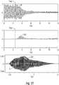 Zur Amplitudenmodulation einer Sinusschwingung oder einer anderen oszillierenden Schwingung muss nicht notwendigerweise das komplette Messsignal26 herangezogen werden. Es kann z. B. vorgesehen sein, dass dazu nur ein Teil des Messsignals26 oder des verarbeiteten Messsignals26 verwendet wird, beispielsweise der Teil; der oberhalb oder unterhalb eines bestimmten Schwellwerts liegt. Eine derartige Amplitudenmodulation ist in37 beispielhaft dargestellt. In dem obersten Graph von37 ist das bandpassgefilterte Messsignal26 gegen die Zeit t aufgetragen, ferner ist der Startzeitpunkt tstart der Stimulation angegeben. In dem mittleren Graph ist das aus dem Messsignal26 gewonnene Modulationssignal250 dargestellt. Zur Generierung des Modulationssignals250 ist das Messsignal26 nicht-linear verarbeitet worden und alle negativen Werte des Messsignals26 bzw. des verarbeiteten Messsignals26 sind auf Null gesetzt worden. Ferner ist das Modulationssignal250 gegenüber dem Messsignal26 zeitverzögert worden. Anschließend ist das so gewonnene Halbwellensignal 250 mit einer Sinusschwingungen der Frequenz f1 = 1000 Hz multipliziert worden. Das Modulationssignal250 stellt die Einhüllende der Sinusschwingung dar, wie im untersten Graph von37 für einen kleinen Zeitausschnitt gezeigt ist. Die so gewonnene amplitudenmodulierte Sinusschwingung ist anschließend in die Stimulationseinheit11 rückgekoppelt worden, um von dem Schallgenerator in die akustischen ersten Reize21 umgesetzt zu werden.For the amplitude modulation of a sine wave or another oscillating oscillation does not necessarily have thecomplete measurement signal 26 be used. It can, for. B. be provided that only a part of themeasurement signal 26 or the processedmeasurement signal 26 is used, for example, the part; which is above or below a certain threshold. Such an amplitude modulation is in 37 exemplified. In the top graph of 37 is the bandpass filteredmeasurement signal 26 plotted against the time t, also the start time tstart of the stimulation is indicated. In the middle graph this is from themeasurement signal 26 obtainedmodulation signal 250 shown. For generating themodulation signal 250 is themeasurement signal 26 has been processed non-linearly and all negative values of the measuringsignal 26 or the processedmeasurement signal 26 have been set to zero. Further, themodulation signal 250 opposite the measuringsignal 26 delayed. Subsequently, the thus obtained half-wave signal 250 has been multiplied by a sinusoidal oscillation of the frequency f1 = 1000 Hz. Themodulation signal 250 represents the envelope of the sine wave, as in the bottom graph of 37 is shown for a small time excerpt. The thus obtained amplitude-modulated sinusoidal oscillation is then in thestimulation unit 11 Feedback has been fed back from the sound generator to the acousticfirst stimuli 21 to be implemented.
