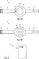 Die Bauteile des Stimulationselements können in ein Gehäuse355 eingebracht sein. In dem Gehäuse355 kann ein Raum356 für Elektronik und Verbindungsanschlüsse vorgesehen sein. Außerdem kann an der Unterseite des Gehäuses355 ein Verstellring357 angebracht sein, der mit dem Gehäuse355 über ein Gewinde verbunden ist und der eine Verstellung der Höhe ermöglicht, um die das Stimulationselement340 in seiner Ruheposition von der Unterseite der Stimulationseinheit hervorsteht (das Stimulationselement340 kann aufgrund des Verstellrings in seiner Ruheposition auch vollständig oberhalb der Unterseite des Verstellrings liegen). Während des Betriebs sitzt das Stimulationselement mit seiner Unterseite auf der Haut des Patienten und ist beispielsweise mit einer geeigneten Manschette am Körper des Patienten befestigt. Zusätzlich oder alternativ zu der Manschette könnte das Stimulationselement noch mit einem ein- oder doppelseitigen medizinischen Klebeband an der Haut des Patienten befestigt sein. Das Gehäuse355 schützt den Patienten vor möglichen Gefahren, wie z. B. elektrischer Spannung.The components of the stimulation element can be housed in ahousing 355 be introduced. In thecase 355 can a room 356 be provided for electronics and connection connections. Also, at the bottom of thecase 355 an adjustingring 357 be attached to thehousing 355 connected by a thread and which allows an adjustment of the height to which thestimulation element 340 protrudes from the bottom of the stimulation unit in its rest position (thestimulation element 340 may also lie completely above the underside of the adjusting ring due to the adjusting ring in its rest position). During operation, the stimulation element sits with its underside on the skin of the patient and is attached, for example with a suitable cuff to the body of the patient. In addition or as an alternative to the cuff, the stimulation element could still be fastened to the skin of the patient with a single-sided or double-sided medical adhesive tape. Thehousing 355 protects the patient from possible dangers, such as B. electrical voltage.