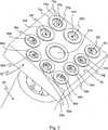 Wie bereits oben erwähnt, kann das flächige Element ein Leitgummi sein, das beispielsweise mit Kohle- oder Rußpartikeln durchsetzt ist. Das Festlegen der ersten Platine an der zweiten Platine kann dabei beispielsweise mittels eines Klebstoffs erfolgen, der beispielsweise nur an den Ecken der ersten und zweiten Platine aufgebracht wird, wobei an diesen Klebepunkten dann das flächige Element nicht vorhanden oder zumindest ausgespart ist, damit die erste Platine und die zweite Platine unter Druckausübung auf das flächige Element aneinander festgelegt werden können.As already mentioned above, the planar element may be a conductive rubber, which is interspersed, for example, with carbon or soot particles. The fixing of the first board to the second board can be done for example by means of an adhesive which is applied, for example, only at the corners of the first and second board, wherein at these adhesive points then the sheet-like element is not present or at least recessed, so that the first board and the second board can be fixed to each other under pressure on the sheet-like element.