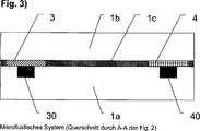 Der Bioanalysator kann weiterhin eine innerhalb der Mikrofluidikeinrichtung gebildete Referenzelektrode umfassen, welche über einen, insbesondere diaphragmenlosen, Stromschlüssel in elektrisch leitfähiger Verbindung mit mindestens einem Substrat steht. Das Substrat, die Gegenelektrode und gegebenenfalls die Referenzelektrode können als elektrisch leitfähige, konnektierbare Filme, insbesondere als Metallbeschichtungen auf der Wand des jeweiligen Kanals der Mikrofluidikeinrichtung, in der sie angeordnet sind, ausgestaltet sein.The bioanalyzer may further comprise a reference electrode formed within the microfluidic device which is in electrically conductive communication with at least one substrate via a current key, in particular without a diaphragm. The substrate, the counterelectrode and optionally the reference electrode can be designed as electrically conductive, connectable films, in particular as metal coatings on the wall of the respective channel of the microfluidic device in which they are arranged.