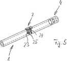 In Ausgestaltung der Erfindung weist die Abziehvorrichtung ein Auflageteil auf. Die Verwendung des Auflageteils ermöglicht eine passgenaue Anordnung der Abziehvorrichtung auf der rauchfreien Zigarette.In an embodiment of the invention, the puller on a support part. The use of the support member allows a snug fit arrangement of the puller on the smokeless cigarette.