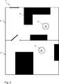 Bei einem normalen Bearbeitungsvorgang wird der Roboter das gesamte zu reinigende Gebiet G bearbeiten können, bis auf die Bereiche unter den Gegenständen. Er kann sich somit beispielsweise von der Position A in die Position A’ bewegen um auch im zweiten Zimmer G2 die Bearbeitung durchzuführen.In a normal machining operation, the robot will be able to machine the entire area G to be cleaned except for the areas under the objects. He can thus move, for example, from the position A to the position A 'to perform the processing in the second room G2.