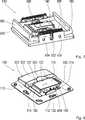 Gemäß einer Ausführungsform können die Betätigungsmittel zum Kontaktieren des mindestens einen Codierkontakts eine Schaltfolie mit einer Mehrzahl von Schaltvorsprüngen aufweisen. Dabei können die Betätigungsmittel zum Aktivieren der Energiewandlereinrichtung zumindest zwei Hebelelemente aufweisen. Die Schaltfolie kann aus einem elastisch verformbaren Material ausgeformt sein. Die Schaltvorsprünge können in Gestalt von Schaltpillen, Schaltnoppen oder dergleichen ausgeformt und an einer Hauptoberfläche der Schaltfolie angeordnet sein. Bei einem Betätigungsvorgang können die Schaltvorsprünge unabhängig voneinander oder gemeinsam in die Codierstellung bewegbar sein. Dabei können Anordnung und Anzahl von Schaltvorsprüngen jenen der Codierkontakte entsprechen. Die zumindest zwei Hebelelemente können hierbei durch ein elastisches Mittel in eine Grundstellung vorgespannt sein. Bei einem Betätigungsvorgang können die zumindest zwei Hebelelemente unabhängig voneinander oder gemeinsam in die Aktivierungsstellung bewegbar sein. Eine solche Ausführungsform bietet den Vorteil, dass bei einem Betätigungsvorgang eine vorteilhafte Kombination von zwei Arten von Betätigungsmitteln vorgesehen ist, um die vorteilhafte, serielle Betätigung der Codierkontakte und des Energiewandlers zu ermöglichen.According to one embodiment, the actuating means for contacting the at least one coding contact may comprise a switching foil with a plurality of switching projections. In this case, the actuating means for activating the energy conversion device may comprise at least two lever elements. The switching foil can be formed from an elastically deformable material. The switching projections may be formed in the form of switching pills, switching nubs or the like and disposed on a main surface of the switching film. In an actuating operation, the switching projections may be movable independently of each other or together in the Codierstellung. In this case, the arrangement and number of switching projections can correspond to those of the coding contacts. The at least two lever elements can in this case be biased by an elastic means in a basic position. In an actuating operation, the at least two lever elements can be moved independently of one another or together into the activation position. Such an embodiment offers the advantage that in an actuating operation, an advantageous combination of two types of actuating means is provided to enable the advantageous, serial actuation of the Codierkontakte and the energy converter.