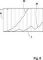 6 zeigt in einem Schaubild, in dem die Signalleistung21 gegen die Wechselwirkungslänge L abgetragen ist, in einem direkten Vergleich die Kennlinie22 für einen herkömmlichen optisch-parametrischen Kristall5' mit einer Quasi-Phasenanpassung erster Ordnung und die Kennlinie23 für einen erfindungsgemäßen optisch-parametrischen Kristall5 mit einer Quasi-Phasenanpassung dritter Ordnung. Aus6 ergibt sich, dass die Signalleistung bei einem erfindungsgemäßen optisch-parametrischen Kristall5 dritter Ordnung mit der Wechselwirkungslänge L insgesamt modulierend schwach ansteigt, während die Signalleistung eines herkömmlichen optisch-parametrischen Kristalls5' erster Ordnung bereits nach vier Kohärenzlängen ΛC einen Wert erreicht hat, den die Kennlinie23 des optisch-parametrischen Kristalls5 dritter Ordnung gemäß der Erfindung erst nach rechnerisch zwölf Kohärenzlängen ΛC einnimmt. 6 shows in a graph in which thesignal power 21 is plotted against the interaction length L, in a direct comparison, thecharacteristic 22 for a conventional optical parametric crystal 5 ' with a first-order quasi-phase matching and thecharacteristic curve 23 for an optical parametric crystal according to theinvention 5 with a third-order quasi-phase adaptation. Out 6 shows that the signal power in an optical parametric crystal according to theinvention 5 third order with the interaction length L overall modulating weakly increases while the signal power of a conventional optical parametric crystal 5 ' first order after four coherence lengths ΛC has reached a value that thecharacteristic 23 of the opticalparametric crystal 5 third order according to the invention only after computationally twelve coherence lengths ΛC occupies.