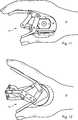 Bei einigen bevorzugten Ausgestaltungen beträgt eine Länge des Fingerauflageabschnitts zwischen 35% und 95% der Länge des Fingerhebels, bevorzugt zwischen 45% und 90%, besonders bevorzugt zwischen 55% und 85% und insbesondere zwischen 65% und 80%. Unter der Länge des Fingerauflageabschnitts soll dabei die Strecke vom ersten Anlenkpunkt zum distalen Ende des Fingerhebels verstanden werden. Unter der Länge des Fingerhebels soll die Strecke vom zweiten Anlenkpunkt über den ersten Anlenkpunkt bis zum distalen Ende des Fingerhebels verstanden werden.In some preferred embodiments, a length of the finger rest portion is between 35% and 95% of the length of the finger lever, preferably between 45% and 90%, more preferably between 55% and 85%, and most preferably between 65% and 80%. The length of the finger rest section should be understood to mean the distance from the first articulation point to the distal end of the finger lever. The length of the finger lever should be understood as the distance from the second point of articulation via the first point of articulation to the distal end of the finger lever.