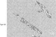 Der hierarchische Strukturaufbau der Plättchen (Nadeln aus angeordneten Nanopartikeln, die zu Plättchen zusammengelagert sind) ist sehr charakteristisch und bisher nicht bekannt. Die Struktur ist mit geringem Aufwand im Rasterelektronenmikroskop analysierbar.The hierarchical structure of the platelets (needles of arranged nanoparticles, which are assembled into platelets) is very characteristic and not yet known. The structure can be analyzed with little effort in the scanning electron microscope.