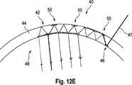 Die Korrekturanordnung kann sowohl für die (in Bezug auf den Krümmungsradius) innere als auch für die äußere Fläche oder für beide Flächen der gekrümmten Lichtleiteranordnung bzw. des gekrümmten Lichtleiters ausgelegt werden. Die Wirkung der gekrümmten Lichtleiteranordnung auf Wellenfrontaberrationen und eventuell induzierte Farbaberrationen können in einem selben Gitter oder in einem zweiten Gitter der Korrekturanordnung korrigiert werden.The correction arrangement can be designed for both the (with respect to the radius of curvature) inner and for the outer surface or for both surfaces of the curved light guide assembly and the curved light guide. The effect of the curved fiber array on wavefront aberrations and possibly induced color aberrations can be corrected in a same grid or in a second grid of the correction arrangement.
