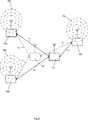1g zeigt den EMF-Client19 und mindestens zwei EMF-Versorger20a und20b. Die Leistung am Empfänger sinkt im Fernfeld der Versorger-Antenne typisch mit zunehmendem Abstand zwischen den EMF-Versorgern20a, b und dem EMF-Client19 um 20 dB pro Dekade des Abstandes ra, ra', rb, rb'. Der Abstand ra, ra', rb, rb' zwischen den einzelnen Teilnehmern kann so anhand der Empfangsleistung zwischen den EMF-Versorgern20a, b und dem EMF-Client19 näherungsweise bestimmt werden ohne Berücksichtigung der Dämpfung hervorgerufen durch Gegenstände, die sich zwischen den EMF-Versorgern20a, b und dem EMF-Client19 befinden, beispielhaft einer Wand. In seiner Ausgangsposition bewertet der EMF-Client19 die Feldstärke des vom EMF-Versorger20a ausgestrahlten EMF14a und bestimmt daraus den Abstand ra sowie die Feldstärke des vom EMF-Versorger20b ausgestrahlten EMF14b und bestimmt daraus den Abstand rb. In der Position19' bestimmt der EMF-Client19 die Abstände ra' und rb' auf gleiche Weise. Aus der Beziehung, dass ra' größer als ra und rb' kleiner als rb ist, detektiert der EMF-Client19 eine Bewegung weg vom EMF-Versorger20a hin zum EMF-Versorger20b. 1g shows theEMF client 19 and at least twoEMF suppliers 20a and 20b , The power at the receiver typically decreases in the far field of the utility antenna as the distance between the EMF suppliers increases 20a , b and theEMF client 19 by 20 dB per decade of the distance ra , ra ', rb , rb '. The distance rA, Ra ', Rb, Rb' between the individual subscribers can thus based on the received power between theEMF utilities 20a , b and theEMF client 19 Approximately be determined without regard to the attenuation caused by items that are between theEMF providers 20a , b and theEMF client 19 located, for example, a wall. In its starting position, theEMF client rates 19 the field strength of theEMF supplier 20a emittedEMF 14a and determines from this the distance ra and the field strength of theEMF supplier 20b emittedEMF 14b and determines from this the distance rb . In the position 19 ' determines theEMF client 19 the distances ra 'and rb ' in the same way. From the relationship that ra 'greater than ra and rb ' is smaller than rb , the EMF client detects 19 a move away from theEMF provider 20a to theEMF supplier 20b ,