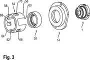 Das Halteelement kann einen ersten etwa kreisringförmigen Abschnitt und einen sich daran anschließenden zweiten etwa kreisringförmigen Abschnitt aufweisen, der dann vorzugsweise einen größeren Außendurchmesser hat. Durch die gestuften Abschnitte ist eine vereinfachte Handhabung, beispielsweise bei einem Einsatz eines Montagewerkzeugs, ermöglicht. Des Weiteren ist denkbar, dass am Halteelement eine Referenzierung vorgesehen ist. Beispielsweise könnte am zweiten Abschnitt als Referenzierung eine äußere Abflachung ausgebildet sein.The holding element may have a first approximately annular portion and an adjoining second approximately annular portion, which then preferably has a larger outer diameter. The stepped sections enable simplified handling, for example when using an assembly tool. Furthermore, it is conceivable that a referencing is provided on the holding element. For example, an outer flattening could be formed on the second section as referencing.