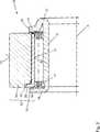 Es ist jedoch besonders bevorzugt, dass die Außenborde radial nach innen gerichtet sind. Damit kann der Massivring auf die Zwischenhülse aufgeschoben oder aufgepresst werden. Ferner ist es bei dieser Ausführungsform bevorzugt, dass der Innenring die zwei nach radial außen orientierte Innenborde aufweist, wobei sich zwischen den Außenborden der Zwischenhülse und den Innenborden des Innenrings ein Ringscheibenspalt als ein Dichtungsspalt ergibt. Vorzugsweise sind die Borde so bemessen, dass die Innenborde einen Außendurchmesser haben, welcher größer ist als der Innendurchmesser der Außenborde, sodass Außenborde und Innenborde überlappen und auf diese Weise beidseitig jeweils den Ringscheibenspalt als Dichtungsspalt bilden.However, it is particularly preferred that the outboards are directed radially inward. Thus, the solid ring can be pushed or pressed onto the intermediate sleeve. Further, in this embodiment, it is preferable that the Inner ring having two radially outwardly oriented inner rims, wherein there is an annular disc gap as a sealing gap between the outer rims of the intermediate sleeve and the inner rims of the inner ring. Preferably, the shelves are dimensioned so that the inner rims have an outer diameter which is larger than the inner diameter of the outer rims, so that outer rims and inner rims overlap and in this way on both sides each form the annular disc gap as a sealing gap.