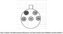 Der Albumin-Siebkoeffizient einer Hohlfasermembran wird an einem Filter wie in Messmethode