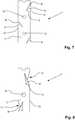 Wenn die Widerhaken beim Zurückziehen des Fadens ausklappen, hängt es vom Zufall ab, in welche Richtung die Widerhaken ausklappen. Beispielsweise können die Widerhaken bei einem abgeflachten oder bandförmigen Fadenkörper zur Vorderseite oder zur Rückseite hin ausklappen. In einer bevorzugten Ausführungsform weisen die Widerhaken bzw. deren scharnierartige Verbindungen deshalb eine definierte Klapprichtung auf, mit der sie aus dem Fadenkörper ausklappbar sind. Dies kann etwa dadurch erreicht werden, dass die scharnierartigen Verbindungen an einer Seite eine Vertiefung oder eine geringere Stärke aufweisen und der Widerhaken deshalb in Richtung der entsprechenden Seite ausklappt.If the barbs unfold when the thread is pulled back, it depends on the direction in which the barbs unfold. For example, the barbs of a flattened or ribbon-shaped thread body can fold out towards the front or towards the back. In a preferred embodiment, the barbs or their hinge-like connections therefore have a defined folding direction with which they can be folded out of the thread body. This can be achieved, for example, in that the hinge-like connections have a recess or a smaller thickness on one side and the barb therefore folds out in the direction of the corresponding side.
