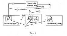Weiterhin existiere eine Menge von Relaisstationen R, die untereinander vermittels eines dezidierten, bspw. durch Quantenkryptographie abhör- und manipulationssicheren Kommunikationsnetzes derart vernetzt seien, dass die maximale Nachrichtenübertragungszeit in diesem Netz den Echtzeitanforderungen des jeweiligen Anwendungsgebietes genüge. Die Behörde HB habe ebenfalls abhör- und manipulationssicheren Zugang zu diesem Netz, um Kopien der Schlüsselsätze der Teilnehmer zu den Relaisstationen zu übertragen