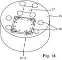 Über den Prozessanschluss 21 ist der Differenzdruckmessaufnehmer 1 mit einem Kundenanschluss 39 verbunden bzw. verbindbar. In dem Prozessanschluss 22 ist die Messkammer 2 angeordnet. Die Messkammer 2 weist ein koplanares Doppelmembransystem auf, das aus zwei in einer Ebene liegenden Doppelmembranen 4a, 4b besteht. An den Trennmembranen 5a, 5b des Doppelmembransystems 4 liegen die Prozessdrücke p1 bzw. p2 an. Das Messwerk 2 ist bevorzugt symmetrisch, bevorzugt vollsymmetrisch, ausgestaltet, was insbesondere die bereits zuvor erwähnten Vorteile mit sich bringt.The differential