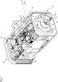 Die Gehäusemantelwand 14 des Vorrichtungsgehäuses 12 umfasst vier ebene Flächenanteile 14a, 14b, 14c und 14d (nur der obere und der vordere ebene Flächenanteil 14a bzw. 14d sind in