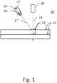 Die Analysevorrichtung 10 umfasst ferner eine Lichtlinieneinheit 18 zum Erzeugen einer Lichtlinie 20 von Licht eines ersten Wellenlängenbereichs auf der Werkstückoberfläche 22. Die Lichtlinieneinheit 18 ist eingerichtet, um einen fächerförmigen Lichtstrahl 24 auf einen Bereich der Werkstückoberfläche 22 einzustrahlen, um die Lichtlinie 20 auf der Werkstückoberfläche 22 zu erzeugen. Die Lichtlinie 20 kann insbesondere senkrecht zu einem Verlauf der Fügekante oder Stufe 23 ausgerichtet sein. Die Lichtlinieneinheit 18 kann als Linienlaser ausgebildet sein. Dementsprechend können der Lichtstrahl 24 ein Laserstrahl und die Lichtlinie 20 eine Laserlinie sein, die Erfindung ist hierauf aber nicht beschränkt. Gemäß Ausführungsformen ist der Lichtlinieneinheit 18 eingerichtet, um einen blauen Laserstrahl mit einer Wellenlänge von ca. 400 nm bis 500 nm zu erzeugen. Gemäß Ausführungsformen ist die Lichtlinieneinheit 18 so angeordnet, dass sie den Lichtstrahl 24 senkrecht auf die Werkstückoberfläche 22 einstrahlen kann.The