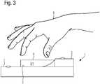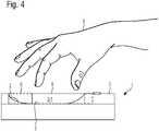 Nachmals verbessert sich die Ergonomie dadurch, dass eine obere Fläche des Drehelementes und eine Oberfläche der Handballenauflage gemäß Patentanspruch 5 weniger als 15 mm Höhenunterschied aufweisen.Ergonomics are further improved in that an upper surface of the rotating element and a surface of the palm rest according to