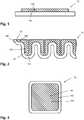 Die bevorzugte Dicke des Blechstapels von ca. 2-10 mm ist bedingt durch die typische Strukturtiefe der Kühlstrukturen. Diesbezüglich unterscheidet sich die Erfindung nicht von Herstellungsverfahren für gleichgeformte Kühlstrukturen durch Umformen eines materialeinheitlichen Ausgangsmaterials. Es hat sich jedoch als vorteilhaft erwiesen, im Rahmen der Erfindung beide Blecharten mit ähnlicher Dicke bereitzustellen. Dabei ist es jedoch besonders günstig, wenn das Kupfer höchstens 50%, vorzugsweise 25%-45% der Gesamtstärke des Blechstapels einnimmt. Dadurch wird in jedem Fall sichergestellt, dass die Oberseite eine im wesentlichen kupferne Anlagefläche darstellt, die sich leicht mit der kupfernen Kontaktfläche des elektronischen Bauteils fügen, insbesondere verlöten oder versintern lässt. Andererseits nimmt das leichte und kostengünstige Aluminium den größten Teil des Kühlkörper-Volumens ein, sodass gleichzeitig ein effektiver Korrosionsschutz sowie eine deutliche Kosten- und Gewichtseinsparung realisiert werden. Allerdings darf die Stärke des Kupferblechs nicht zu gering werden, weil es zur Ausbildung der oben genannten, im Detail noch nicht vollständig verstandenen, innigen Verbindung zwischen Kupfer und Aluminium eines möglichst großen Flächenkontaktes zwischen den beiden Materialien bedarf, sodass das Kupfer möglichst tief in die ausgeformten Kühlstrukturen hineingezogen werden sollte. Dies erfolgt automatisch im Rahmen des Umformens, setzt allerdings eine gewisse Mindestdicke der Kupferschicht im Verhältnis zur Strukturtiefe der Kühlstrukturen voraus. Wie oben bereits angedeutet liegt diese Mindestdicke bei etwa 25% der Stärke des Blechstapels.The preferred thickness of the stack of sheets of approx. 2-10 mm is due to the typical depth of the cooling structures. In this regard, the invention does not differ from production methods for identically shaped cooling structures by reshaping a starting material of the same material. However, it has proven to be advantageous within the scope of the invention to provide both types of sheet metal with a similar thickness. In this case, however, it is particularly advantageous if the copper takes up at most 50%, preferably 25% -45% of the total thickness of the stack of sheets. This ensures in any case that the upper side represents an essentially copper contact surface which can easily be joined, in particular soldered or sintered, to the copper contact surface of the electronic component. On the other hand, the light and inexpensive aluminum takes up most of the volume of the heat sink, so that at the same time effective corrosion protection and significant cost and weight savings are achieved. However, the thickness of the copper sheet must not be too small because the above-mentioned intimate connection between copper and aluminum, which is not yet fully understood in detail, requires the greatest possible surface contact between the two materials, so that the copper as deeply as possible into the formed Cooling structures should be drawn into it. This takes place automatically as part of the forming process, but requires a certain minimum thickness of the copper layer in relation to the depth of the cooling structures. As already indicated above, this minimum thickness is around 25% of the thickness of the stack of sheets.