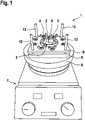 Zum Antrieb des hantelförmigen Magnetrührstabs 3 mit magnetischem Kern dient hier ein Magnetrührer 7, der innerhalb seines Tisches 8 mindesten einen in seiner Drehzahl einstellbaren, elektrisch angetriebenen, rotierenden Magneten aufweist. Solche Magnetrührer sind bekannt und daher hier auch nicht weiter erläutert. Der rotierende Magnet innerhalb des Tisches wirkt auf den Magnetkern im Magnetrührstab und versetzt letzteren ebenfalls in eine rotierende Bewegung.A magnetic stirrer 7 is used here to drive the dumbbell-shaped magnetic stirring