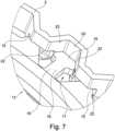 Durch diese Verdrehbewegung wird auch das Eingriffselement 16 verdreht, so dass es in der Endposition radial benachbart zu der Zahnlücke 20 positioniert ist. In dieser Position wird nun mit einem geeigneten Werkzeug der Eingriffsbereich 17 radial ausgebogen, so dass sich der Steg 18 vollständig radial erstreckt und der Eingriffsabschnitt 19 formschlüssig in die Zahnlücke 20 eingreift, wie in den