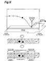 In den3 bis8 gibt ein weißes Dreieck für einen Beschleunigerbetrieb und einen Bremsbetrieb einen Betrieb eines Freigebens des Beschleunigers bzw. Gaspedals an, ein weißer Kreis gibt einen Betrieb eines Betätigens des Beschleunigers bzw. Gaspedals an, ein schwarzes Dreieck gibt einen Betrieb eines Freigebens der Bremse an, und ein schwarzer Kreis gibt einen Betrieb eines Betätigens der Bremse an. Außerdem gibt in der Grafik der Fahrmuster (Fahrbetriebsmuster), die durch eine jeweilige Markierung angegeben sind, die horizontale Achse einen Abstand an, und die vertikale Achse gibt eine Fahrzeuggeschwindigkeit an. Grundlegend gibt es einen Block vor der Annäherung, einen Block während der Annäherung und einen Block nach der Annäherung.In the 3 to 8th a white triangle indicates an operation of releasing the accelerator for an accelerator operation and a brake operation, a white circle indicates an operation of operating the accelerator, a black triangle indicates an operation of releasing the brake, and on black circle indicates an operation of pressing the brake. In addition, in the graphic of the running pattern (running patterns) indicated by a respective mark, the horizontal axis indicates a distance, and the vertical axis indicates a vehicle speed. Basically there is one block before approach, one block during approach and one block after approach.