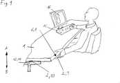 Die herkömmliche Verstellung über Betätigungsvorrichtungen in Form von Schaltern und dergleichen ist dahingehend nachteilig, dass sich der Bediener zum Verstellen des Bauteils des Möbels oder der Arbeitseinrichtung aus seiner Arbeitsposition herausbegibt und sich dem Bedienfeld zuwendet. Bereits das Betrachten der Betätigungsvorrichtung führt zu einer anderen Position des Kopfes und der Wirbelsäule.The conventional adjustment via actuators in the form of switches and the like is disadvantageous in that the operator moves out of his working position for adjusting the component of the furniture or the working device and turns to the control panel. Already the viewing of the actuator leads to a different position of the head and the spine.