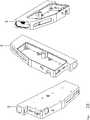 Merkmale 1, 2, 3 und 4. Kombiniertes Wiederauflade- und Nachfüll- Aufbewahrungs- und -Transportetui; Etui mit beweglichem PV-Halter; Nachfüllen des PV; PV - Verriegelungsmechanismus