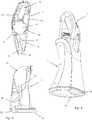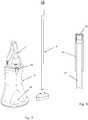 Eine Fernbedienung für das Ein- und Ausschalten des ersten Gebläses und/oder, im Falle des Vorhandenseins eines solchen zweiten Gebläses in der Aufnahmestation, des zweiten Gebläses kann aber auch losgelöst von einem Kehrbesen als eigenständiges Element vorgesehen sind, dies insbesondere auch dann wenn die Kombination keinen eigenen Kehrbesen enthält. Eine solche separate Fernbedienung kann z.B. als einfaches tragbares Teil gebildet sein. Sie kann aber z.B. auch mit einer Einrichtung zum Festlegen an einem Stiel eines anderen, im Haushalt vorhandenen Kehrinstruments, z.B. eines Haushaltsbesens, versehen sein, z.B. mit einer Manschette oder dergleichen.A remote control for switching on and off of the first blower and / or, in the case of the presence of such a second blower in the receiving station, the second blower can also be provided detached from a broom as an independent element, especially if the combination does not contain its own broom. Such a separate remote control may e.g. be formed as a simple portable part. It can, however, e.g. also with a device for fixing to a stem of another domestic sweeping instrument, e.g. a household broom, e.g. with a cuff or the like.