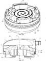 - 16 ist eine perspektivische Ansicht der oberen Kappe und der festen Spirale von15 in zusammengebautem Zustand von unten;