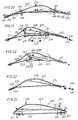 Die Fig. 6C, D und E veranschaulichen schematisch, daß es in einer mittleren Verschiebungslage von Stütz- und Zugband eine über die Bandlänge, gehende Krümmung gibt und daß bei einer weiteren Spannung des Zugbandes im Stützband eine zweite stärkere Krümmung zwischen Abstützstelle und Abstandhalter gebildet werden kann.6C, D and E illustrate schematically that there is a curvature over the length of the band in a central displacement position of the support and tension band and that with a further tension of the tension band in the support band, a second stronger curvature is formed between the support point and the spacer can.