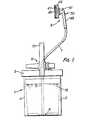 - A pressurizingassembly 9 including a capsule of liquified gas and a reduction valve (not shown in Figure 1) is mounted eccentrically on thelid 5 and pressurizes the vessel 1 and the inside and outside of thecontainer 2. Also mounted on thelid 5 is a safety valve (not shown in Figure 1) and ahandle 10 which has two upright limbs extending from the diametrically opposite parts of the periphery of thelid 5 and an integral cross-member connecting the tops of the upright limbs. Thus, thehandle 10 is of inverted rectangular 'U' shape.