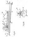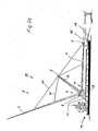 In Fig. 5a ist eine mögliche Ausbildung eines Arbeitsflügels 3 oder Stützflügels 4 dargestellt. Dieser Flügel besteht aus einem Holm 37, dessen innenseitiger Hohlraum 40 begehbar sein kann. Der Hohlraum 40 dient zur Aufnahme von Steuerelementen u. dgl. An dem Holm 37 sind im Abstand voneinander Spanten 38 befestigt, die in einer Beplankung 39 versehen werden. Der gesamte Flügel ist in verschiedene Flügelabschnitte 27 unterteilt, die mittels Gelenken 28 miteinander verbunden sind. Um diese Gelenke 28 sind die einzelnen Flügelabschnitte 27 jeweils relativ zueinander verdrehbar, so daß über die Streckung des Flügels abschnittsweise unterschiedliche Anstellwinkel der Flügelabschnitte 37 eingestellt werden können. Hierdurch ist es möglich, jeden Flügel an die jeweiligen Anströmverhältnisse optimal anzupassen.5a shows a possible design of a working