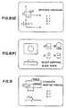 - When the operator inputs the dimension data (aa, b and h) in response to the message, the microprocessor MPU reads and stores these data in the random access memory RAM2 for temporal storage.Step 42 then follows, wherein the plan and elevational view of a rectangular parallelepiped having the dimensions so input in longitudinal, transverse and height directions are displayed on the scaling zone 12b of the CRT screen 12a, as shown in Figure 8(c). At the same time, respective plan and elevational views of four additional blank shapes including one general rectangular parallelepiped, one general circular cylinder, one general round hole and one general square hole are also displayed at the right half of theCRT screen 12, along with a message given at the right-lower portion of theCRT screen 12 to instruct that the operator select one of the four additional blank shapes.
