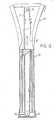 Wie bereits mit Bezug auf Fig. 1 beschrieben wurde, sind bei dem erfindungsgemäßen Schläger die Saiten, beispielsweise die Saite 22, über die Rahmenfläche hinaus bis in das Griffstück 10 hinein verlängert. Zwischen den Punkten C und D in Figur 1 ist die Saite 22 im wesentlichen berührungsfrei geführt, so daß die gesamte Länge A-B an der elastischen Dehnung der Saite 22 beim Auftreffen eines Balles teilnehmen kann.As already described with reference to FIG. 1, in the racket according to the invention the strings, for example the