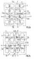 Comme il ressort des figures 2a et 2b, qui représentent respectivement une portion de la feuille diélectrique 20 et de la feuille diélectrique 30, la configuration répétitive des circuits d'antenne permet de trouver, entre les conducteurs imprimés 22 et 32 des espaces vides en suffisamment grand nombre pour que les couples de plots assurent la rigidité de l'ensemble, bien qu'étant éloignés les uns des autres.As is apparent from FIGS. 2a and 2b, which respectively represent a portion of the