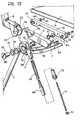 - The rear ends of the twolateral support members 10 are pivotally connected to the two L-shaped arms 8, substantially in proximity to the elbow thereof. As will be apparent, the connection of the rear ends of thesupport members 10 to thesupport arms 8 is effected by the engagement of a pin in a slot so as to allow correct movement of the elements described above.
